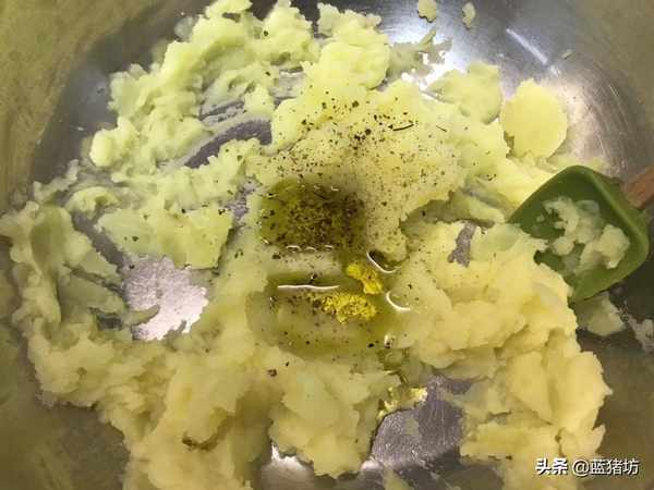 1.將土豆去皮,切成塊,放入蒸鍋中蒸至熟透。趁熱用勺子把它們壓成糊狀,加入橄欖油和黑胡椒調味