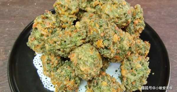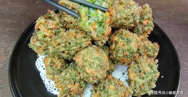 5、浮起來之後,輕輕的翻動,讓它受熱均勻。外表炸至金黃酥脆就可以撈出控油瞭,裝入盤中,一份野菜丸子制作完成,外酥裡嫩,非常的好吃。