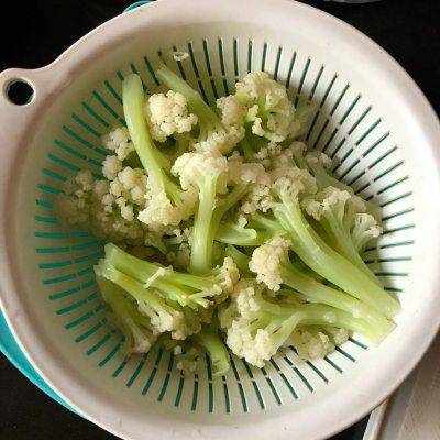 1.將水燒開,將花椰菜掰成小塊,放入水中燙1分鐘。不要花太長時間,否則烹飪會過於松軟無味。