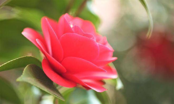 紅山茶的葉子呈長橢圓形,花朵大而鮮艷,顏色豐富多彩,有白色、粉紅色、紅色等,花朵直徑可達5厘米以上,長時間盛開。