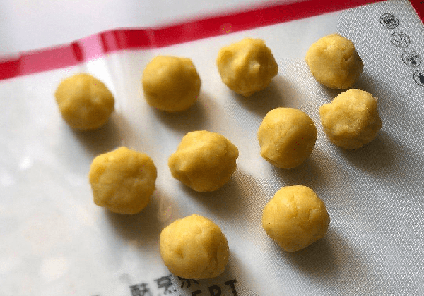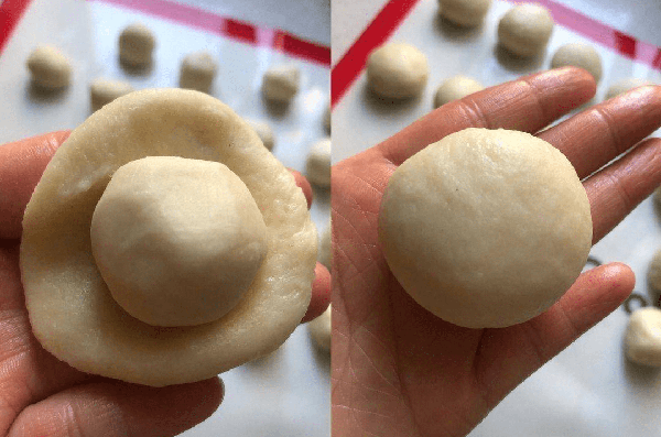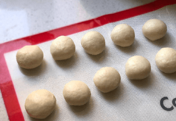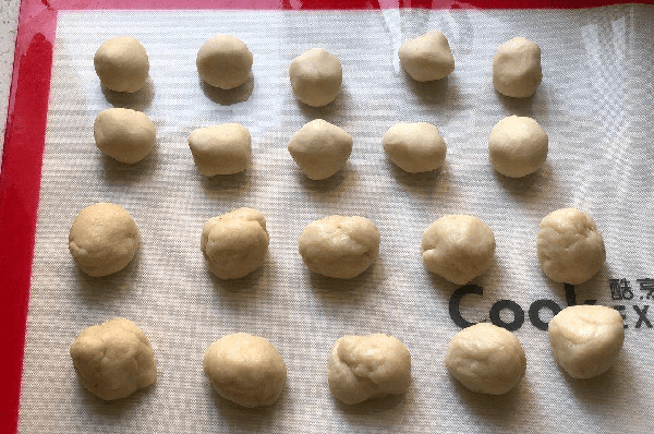 步驟九:稍微放涼,搓成34克的一個一個小圓球,保鮮膜蓋上防止風幹備用。