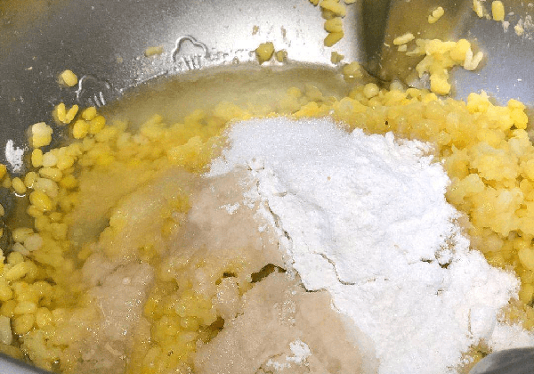 步驟十二:油皮部分,中粉,細砂糖,豬油混合