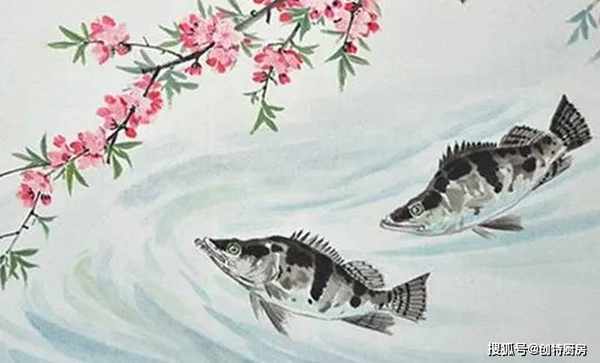 春江水暖,桃花盛開之季,水邊桃花燦爛如錦,水中鱖魚騰躍,一派春光醉人之景!