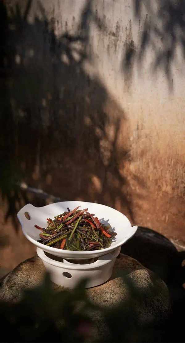 用最經典的炒“桑”燒法就可以翻炒出地衣原真的鮮味,經烹調過的地衣,似木耳之脆,但比木耳更嫩;如粉皮之軟,但比粉皮為脆,潤而不滯,滑而不膩。