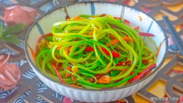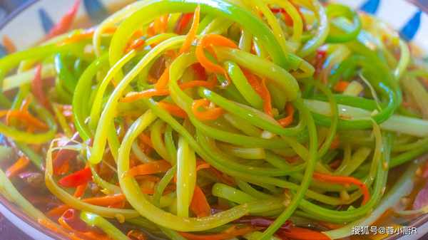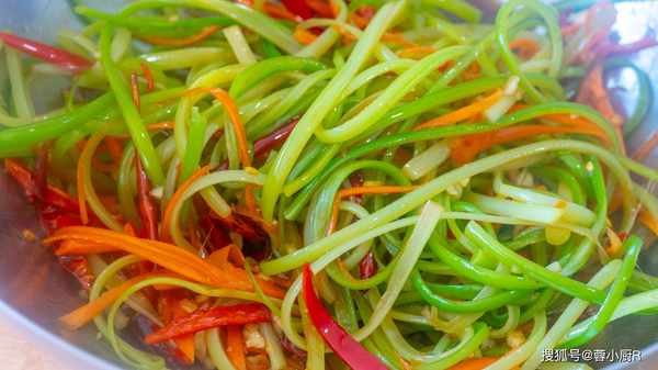 » 食材清單 «蒜苔、生抽、香醋、雞精、白糖、鹽、胡蘿卜絲、蒜末、幹辣椒、小米辣、熱油