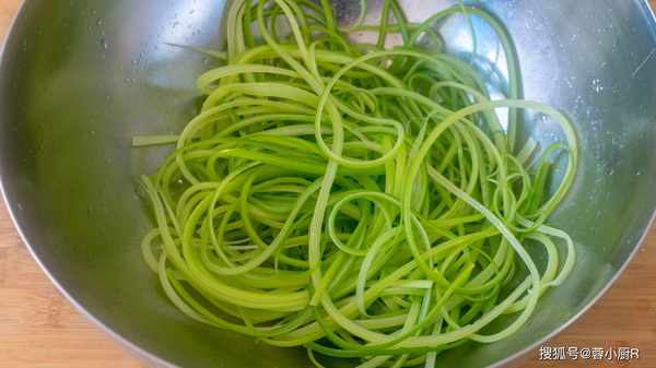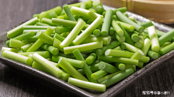 3、蒜苔斷生後撈出來,立馬過一下涼水,顏色和口感都會更好。