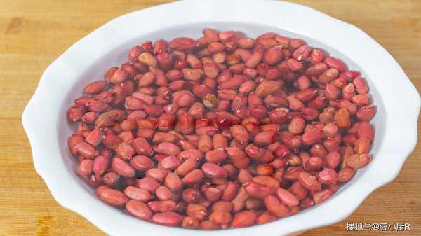 1、紅皮花生300克,加清水洗一下表面的灰塵,然後提前泡2個小時備用。