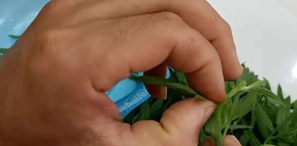 1、大傢好,咱今天用掃帚苗來做個好吃的,首先把掃帚苗摘洗幹凈放入盆裡面。