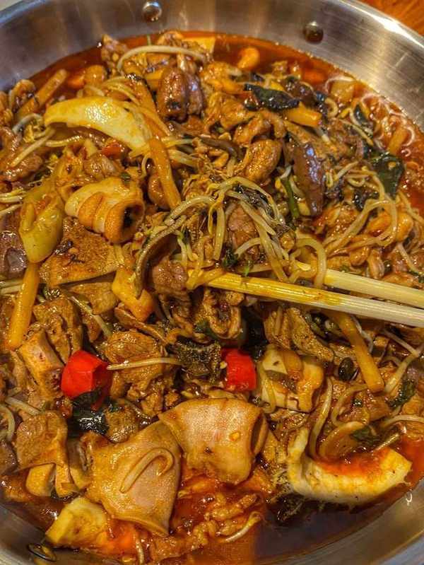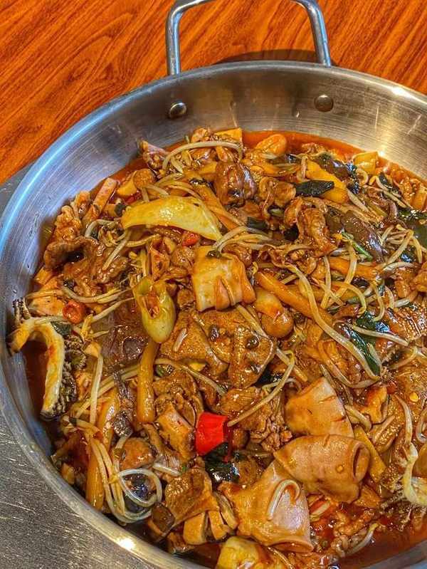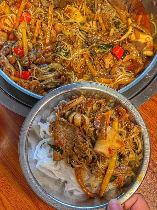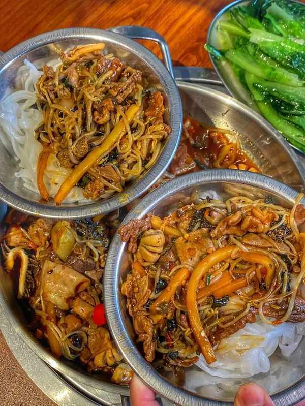 牛雜、豆腐乳、辣椒油等原料制作的美食,以下是制雜(牛肝、牛心、牛肺、牛蹄筋等,按個人口作牛雜拌粉的步驟: