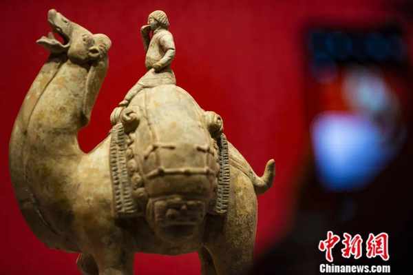 山西博物院藏隋代“胡人吃餅騎駝俑”。侯宇 攝