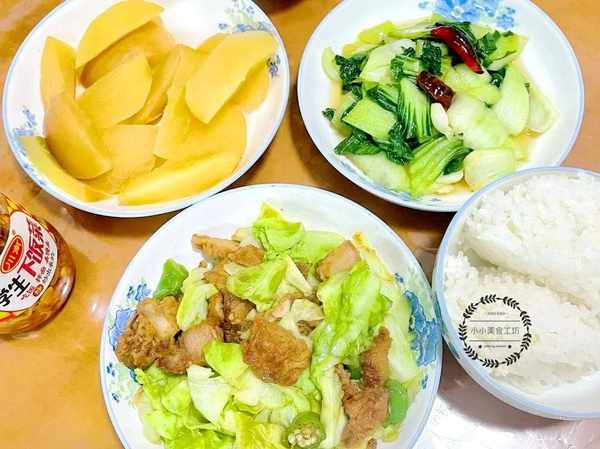 包菜,被譽為“天然葉酸”,常吃可以提高身體的免疫力,這道包菜炒肉,雖然是傢常菜,但吃起來包菜爽脆,肉片鮮香,好吃營養又下飯。素炒油菜,搭配瞭小紅辣椒,吃起來有油菜自身的鮮嫩,略帶辣味,也十分下飯。這道蒸蘋果,很多朋友應該都沒吃過吧,它可以調節脾胃促進消化,每次吃完都覺得胃裡很暖,有滋養脾胃的作用,最後怎麼能少得瞭主食白米飯呢,搭配這樣傢常的菜品,輕輕松松吃掉一大碗。