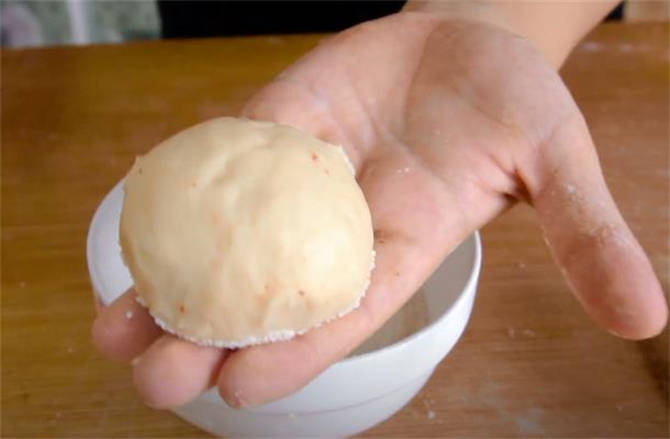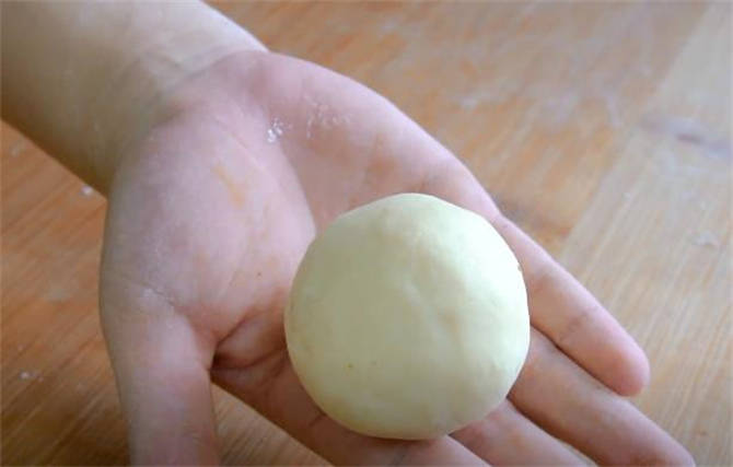 5.把每個小面劑都向裡收圓收緊,把小尾巴捏緊,然後在掌心再次團圓,先搓成這個圓球的樣子。
