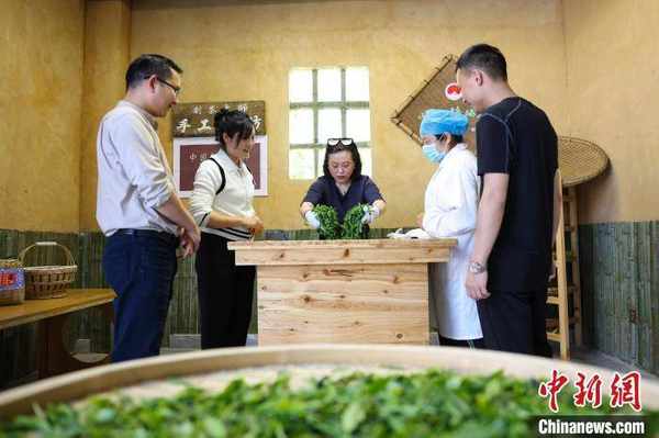 4月16日,遊客在遵義鳳岡茶海之心景區體驗手工制茶。 田成 攝