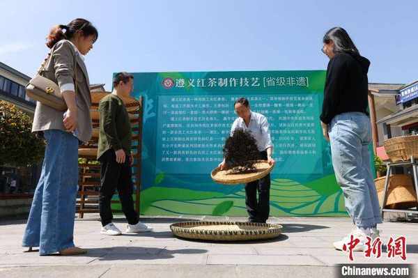 4月15日,遊客在遵義湄潭中國茶城觀看傳統紅茶制作。 田成 攝
