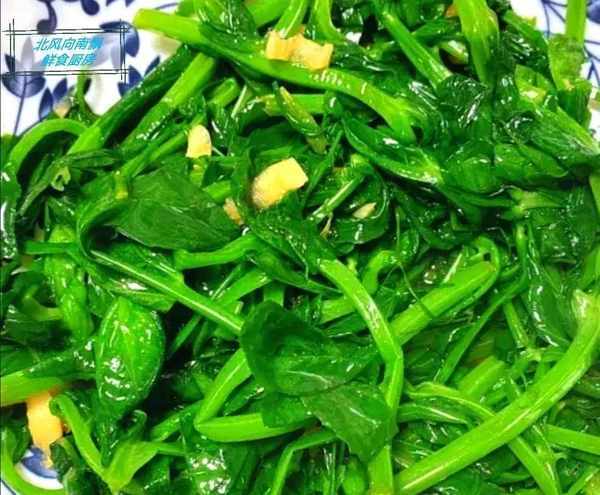 所需食材:薑,蒜,豌豆苗,鹽,雞精