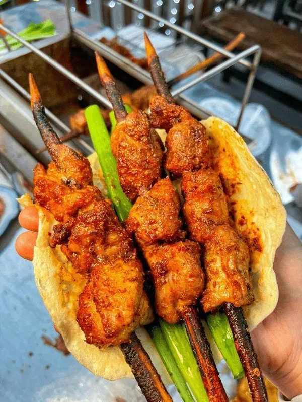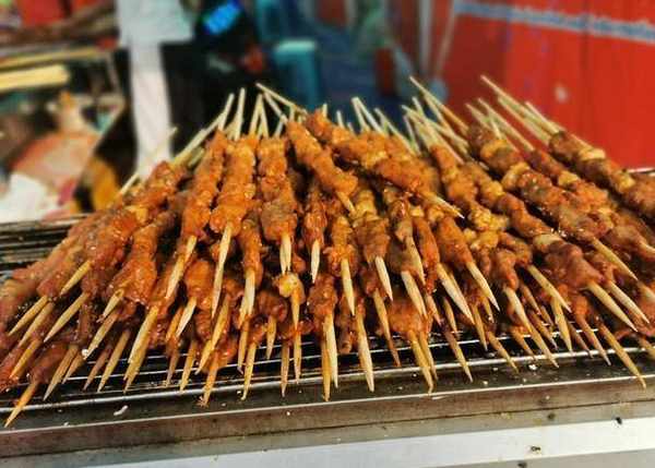 淄博的燒烤,是山東燒烤的“三大門派”之一,其它兩派是濟南燒烤和青島燒烤。淄博食材豐富,燒烤種類繁多。消費者們選擇半分熟的肉串自行放在炭火爐子上復烤,享受著自己動手的樂趣。