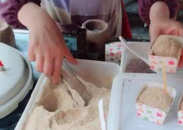 這樣的糕點就是沖沖糕,被很多的人喜歡,像這樣的小吃,吃的方法時間都是非常簡單的,價格也是賣的特別便宜,也有很多的人都會去吃,也有很多的小孩子,他們賺夠瞭錢也會去吃,對於這個店來說最主要用到的材料就是秈米、糯米等等,在處理的時候把它們磨成粉,對這個步驟來說真的是非常的細心,再炒一些花生芝麻等等紅糖都要弄成非常細的粉,最後就可以做最後一步瞭。