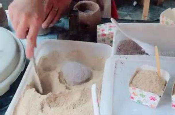 在制作的時候是需要特別小心的,做出來的食物也可以沾上一些粉,芝麻紅糖之類的,也可以符合自己的口味,一塊錢幾個,每天賣的也是限量的,賣完瞭就沒有瞭,想吃等明天像這樣的食物真的是又便宜又好吃,不知道你們喜歡嗎?