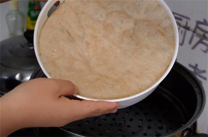5.蒸瞭那麼大一會,咱們看一下面筋蒸好瞭沒有,長瞭滿滿一大盆,蒸的還不錯。