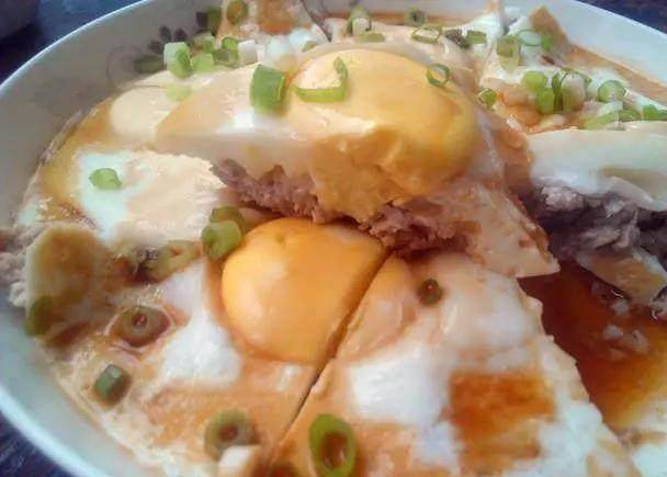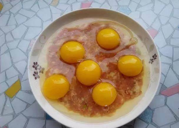 再看媽媽做的獨門蒸雞蛋,把盤子內刷上一層油,把調好豬肉末,放在盤內,用小勺壓平,壓成肉餅,將雞蛋磕入盤內,蒸鍋加水燒開,將盤子放在蒸鍋內,蓋上鍋蓋,大火蒸10分鐘。