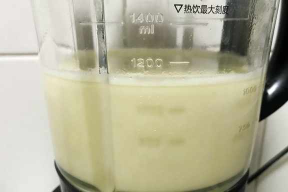 看看,是不是很細膩呢!這樣的豆漿口感更像米糊,細膩順滑,喝不出豆子的味道,倒是有米糊的香濃感,對於不愛喝豆漿的小朋友來說,這種濃香型的豆漿更好接受。