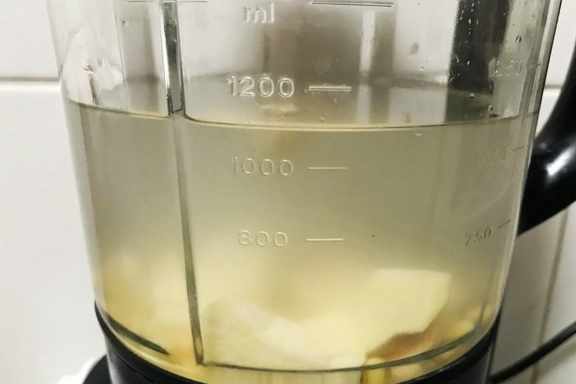 步驟三:破壁機安裝好,放上適量的清水,我這裡放到水位線1100ml的位置,這個濃度我個人感覺比較合適;