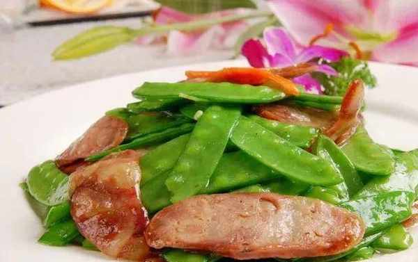 食材:荷蘭豆半斤,臘腸一根,生薑少量。