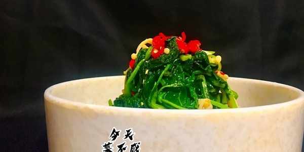 8、將調好的三合油均勻淋在菠菜上即可。如果喜歡花椒油的味道,也可以淋一點。