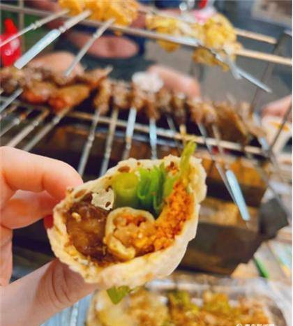 用餅包裹住肉串,超長的小蔥蘸上燒烤醬,淄博“烤肉的靈魂”就集齊瞭……眾所周知,淄博燒烤“餅卷肉”的吃法在全國獨具特色,自己烤、自己卷,也具備一定的儀式感,差異化的吃法也吸引眾多食客前來體驗嘗鮮。