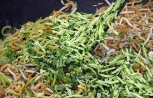 煎餅的制作工藝並不復雜,出攤的前一晚,在傢用綠豆面做好煎餅,趕集時隻需要把煎餅餡料炒好就行瞭。餡料很簡單,般都是新鮮的黃瓜絲、豆芽,再加入鮮雞蛋,炒在一起,行傢翻饃是講究正反面的。一般先烙的一面為正面,後烙的一面為反面。最後把烙好的一摞饃拿起來放到盤子裡,就可以上桌瞭,烙饃不卷菜,吃一個牙就嚼酸瞭,所以一般烙饃都是要卷菜吃的。有客人來購買的時候,拿煎餅卷起炒好的餡料,看上去色香味俱全,讓人很有食欲。最主要的是菜量超多,超級大的一份,看著就很讓人覺得實惠!