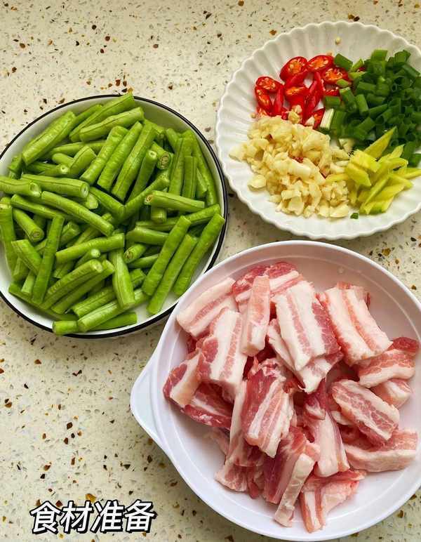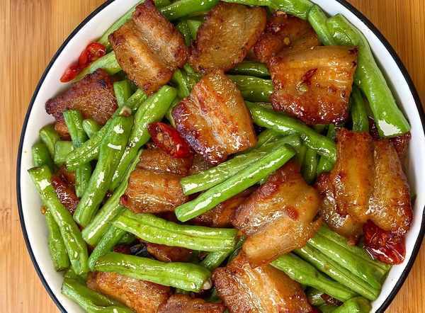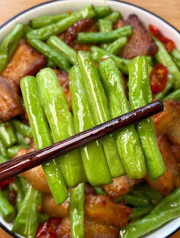 主要食材:五花肉,豆角,小米辣,蔥花,蒜末,薑絲,生抽,蠔油,鹽,豆角肉末拌飯是下飯的神菜,那豆角炒肉則是更偏向於解饞,讓人產生食欲。