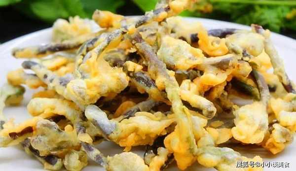 3、將包好的面包屑放入50克幹炸粉中,用幹粉均勻塗抹