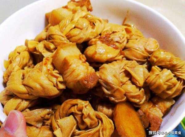 1.燒五花肉的皮,刮幹凈,切塊放入油鍋,炸至油盡,加入薑片,蔥段,料酒,香料,幹辣椒結,熄火醬油、鹽、糖和鮮湯,改用小火慢燉紅燒肉。再紮一千張,放在開水鍋裡燙一下。