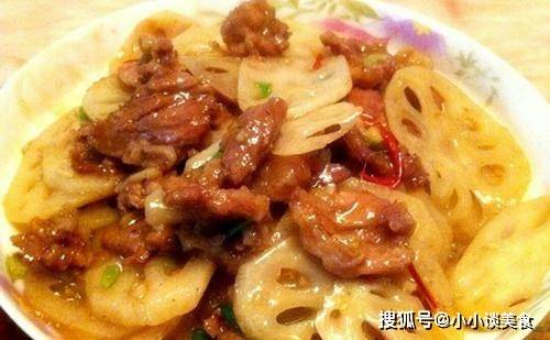 配料:鮮藕、豬肉、豆瓣醬、醬油、糖、鹽、薑、蒜。