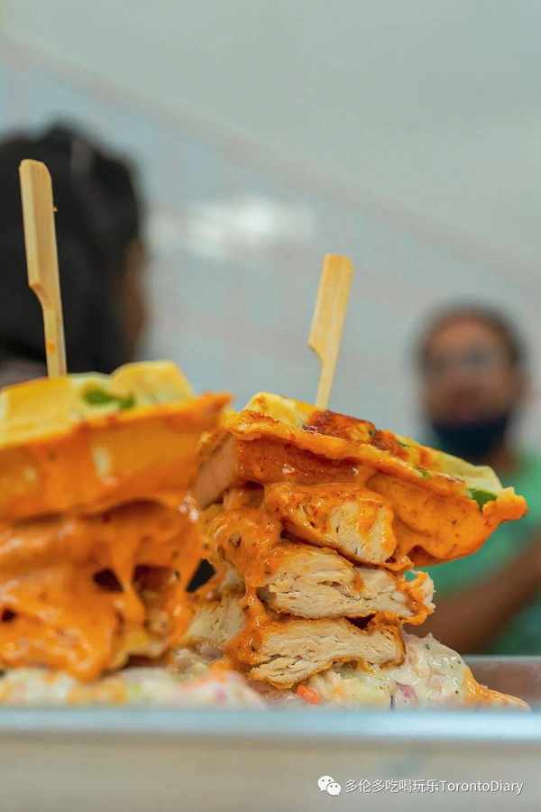 你可以選擇他們的Cluck Yeah!與墨西哥辣椒切達華夫餅、涼拌卷心菜、墨西哥辣椒醬和蒔蘿蛋黃醬,或者他們的Shut the Parm Up與羅勒帕爾馬幹酪華夫餅、馬裡納拉醬、馬蘇裡拉、帕爾馬幹酪和羅勒!