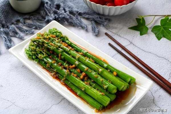 配方:蘆筍300克 大蒜2個 鹽1勺 生抽2勺 香醋2勺 溫開水15克