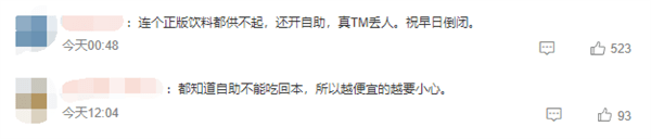 對此,有網友吐槽:“他是怎麼找到那麼多假貨的”“連個正版飲料都供不起,還開自助,真丟人”等等。