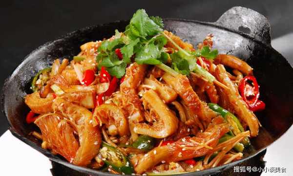 3、熱鍋冷油,放入花椒、薑末、辣椒爆香,加入牛肚和料酒翻炒片刻;