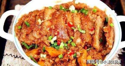 豬肉600克,蒸肉1袋,植物油80克,水160克,南瓜350克。