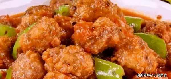 5、大火收汁,放入青椒,加入雞精調味,炒至青椒碎。