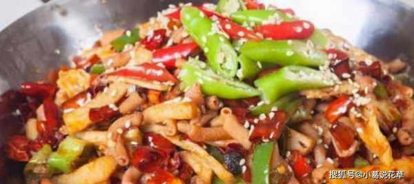 1.鴨腸用開水燙15秒,切成3厘米長的段。青椒切成小塊