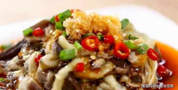 3、將調好的汁澆在茄子上,在茄子上放上蔥花、薑末、蒜末和小米椒。待鍋內生油80%熱時,淋在茄子上,趁熱拌勻。