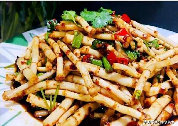 耳根適量、大蔥2個、小紅椒2個、蒜末1瓣、花生油1湯匙、生抽適量、老幹媽辣椒醬1湯匙、香醋3滴、鹽少許
