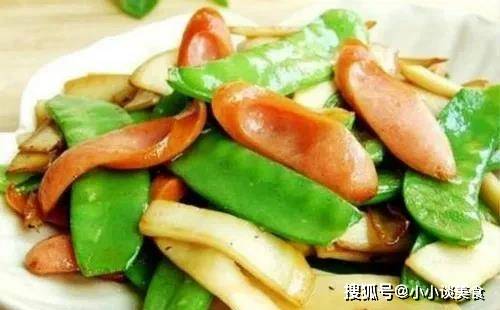 2、杏鮑菇切長條,香酥小腸切片,鍋中加入少許油,平菇炒軟,加入香酥小腸翻炒;