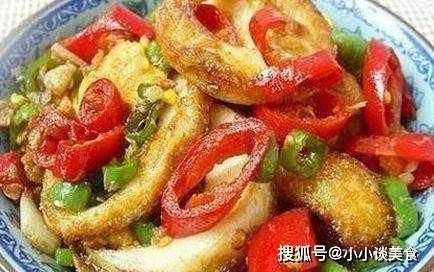 4、青紅椒切塊。鍋內留底油,下青紅椒炒半分鐘。