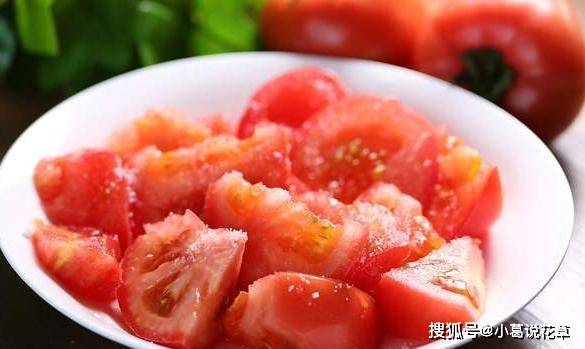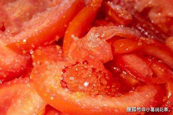 大傢要註意鹽不要放太多,因為鹽是咸的,放多瞭會破壞番茄的甜味,番茄就會咸。從