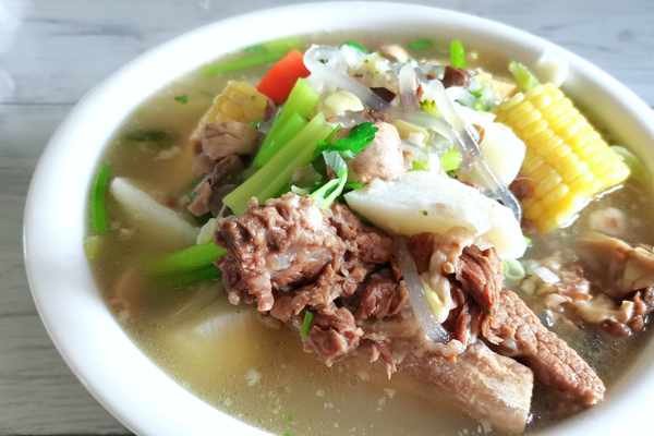 牛排骨,玉米,圓菇,西蘭花,香芹,香菜,紅蘿蔔,大葱、蒜、薑,粉條,肉菜共11樣。