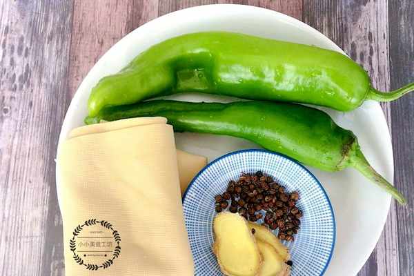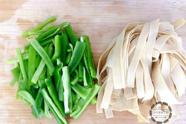 [食材]:尖椒2個,豆皮1張,生薑適量。