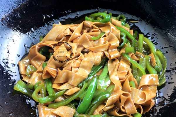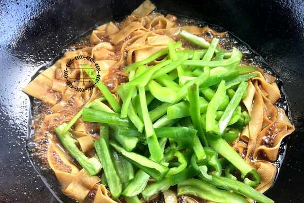 1、豆皮不用焯燙,用生薑和花椒給底油増香,再加入豆皮直接翻炒即可。