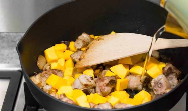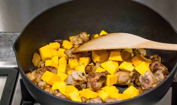 排骨變色後加入南瓜塊;